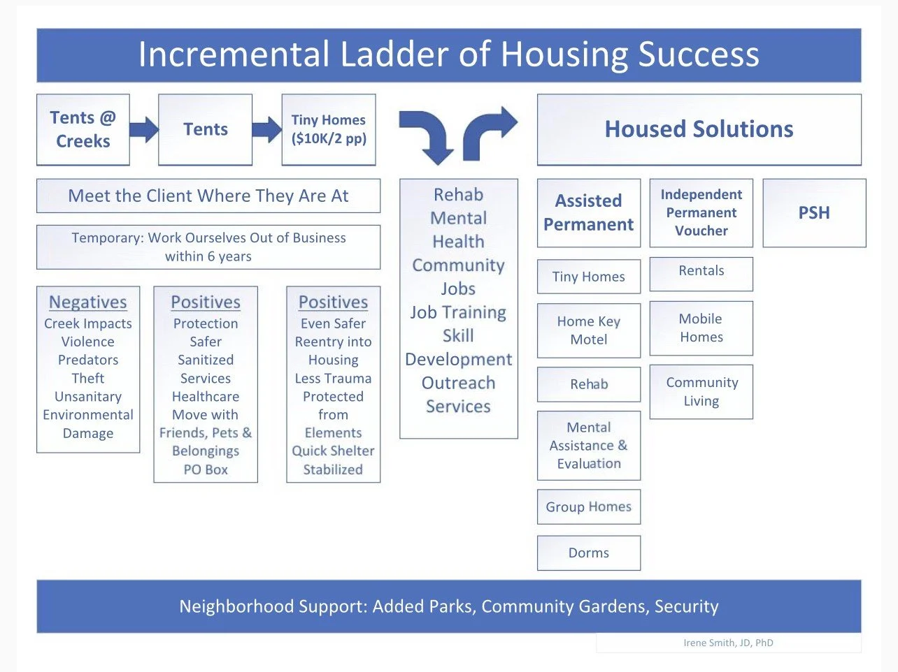 The Incremental Ladder of Housing Success works while we wait for more housing to be built. And in six years, when we have worked our way out of business and no one is in a tent and no one is at the temporary locations, there will be more housing because we are planning for it right now.